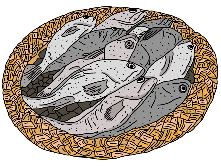 Both the boat illustration at top and this image of fish made by Hafsa Ashfaque.